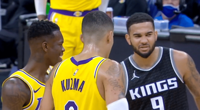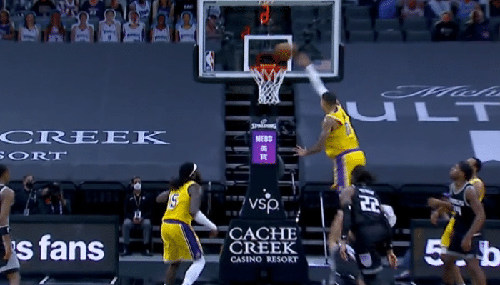 下半场的比赛开始后两队依旧打得十分胶着,三节打完的时候湖人反超1分,比赛进入决胜节,这一节的比赛湖人防守端出现了不小的问题,外线防守给对手了太多轻松出手的机会,希尔德连中两记三分,约瑟夫三分也有,国王队取得了8分的领先优势,关键时刻库兹马、莫里斯连中三分回应,56.9秒施罗德突破上篮命中还造成了加罚,湖人反超1分。
