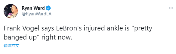 詹姆斯没有随队前往客场,而是留在洛杉矶接受治疗,那么詹姆斯脚踝伤势如何?沃帅透露,詹姆斯的脚踝现在伤得很重。