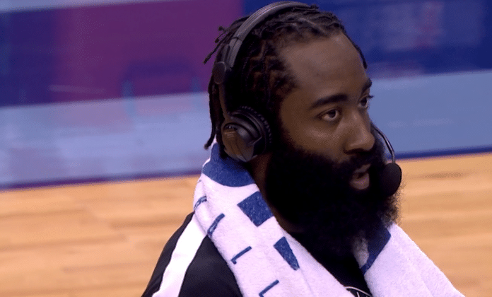 记者插话问及是不是回到了熟悉的地方,篮板和球馆都熟悉,哈登表示:我对于他们很熟悉,所以一切都变得很自然。