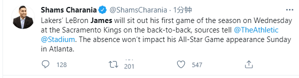 24直播网讯北京时间3月3日,名记Shams在湖人输给太阳的比赛后爆料,湖人对阵国王的背靠背的比赛中,詹姆斯将轮休。这是这位36岁的老将,本赛季第一次轮休。