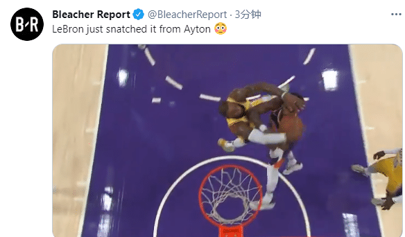 艾顿持球想攻击篮筐得分,岂料此时詹姆斯拼命大帽艾顿,空中拦截上演不可思议的盖帽,老詹身体失去平衡直接摔倒,用身体堵抢眼太拼了,不过眼看湖人开始打反击,詹姆斯赶紧爬起来,然后快速跑回去参与进攻,这一个回合凸显詹姆斯对待比赛的态度。