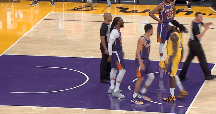 24直播网讯 北京时间3月3日,湖人和太阳比赛中,第三节裁判接连吹罚多个技术犯规,詹姆斯和湖人主帅吃T,太阳核心球星布克连续吃到两个技犯被驱逐离场。短短55秒,裁判吹罚四个技犯太抢镜,布克惨遭驱逐。