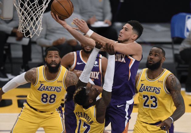末节湖人替补阵容火力不足,落后10分后詹姆斯重新上篮,强突上篮被吹太阳防守干扰球,然后又上篮得分;可没有保罗和布克的太阳仍旧保持两位数领先;最后6分钟,波普三分投不进,詹姆斯连续命中三记三分续命,无奈湖人缺兵少将,最终湖人主场输给太阳。