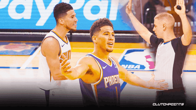 第二节场上发生争议吹罚,布克被琼斯绊倒后,他躺在地板上故意拉倒波普,这只是普通犯规,然后波普防守中撞倒布克,却吃到一级恶意犯规,裁判吹罚瞬间引争议。