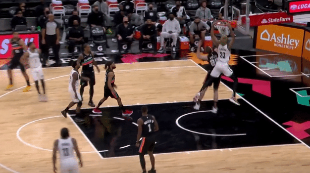 24直播网3月2日讯 今天NBA常规赛篮网通过加时赛以124-113击败马刺,这场比赛篮网99年的中锋克拉克斯顿替补登场,他全场砍下了17分3板1助1断3帽的数据,其中第二节单节轰下13分,末节抢断米尔斯、单防德罗赞送封盖表现非常抢眼。