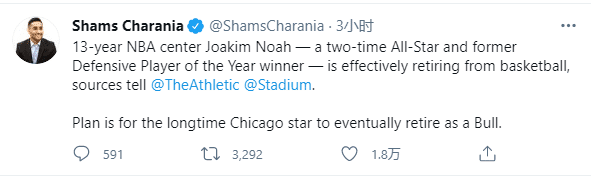 名记Shams爆料乔金-诺阿宣布退役,并且以公牛球员的身份退役,随后诺阿个人官宣退役,正式做出退役的决定从而告别NBA。
