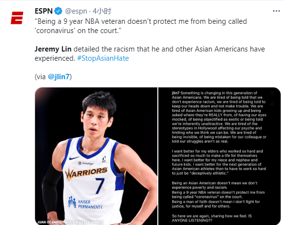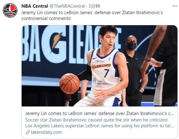林书豪批评伊布双标,与此同时声援詹姆斯这样做没毛病;此前林书豪也遭遇不公,发展联盟的球员居然称他为“新冠”,林书豪曝光自己的遭遇:9年老兵并不能保护自己在球场上不被称为“新冠病毒”