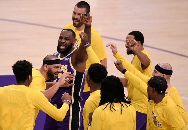末节湖人10-4领先到15分,尤其是詹姆斯突破坎特上篮得分后,他跑到替补席疯狂跳舞庆祝;暂停回来,利拉德带队追分,湖人主动暂停调整一下,詹姆斯再次突破得分,中距离翻身跳投也有,利指导命中超远三分,由于抢球太积极,詹姆斯撞倒卡鲁索,詹姆斯两罚终结比赛,最终湖人主场赢球,终结自己的4连败。