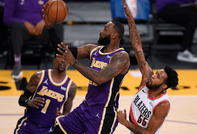 下半场湖人第三节打爆开拓者,疯狂夹击利拉德,开拓者被迫多次失误,湖人趁机反击快攻,詹姆斯又完成空接暴扣;利拉德被防得单节仅4分,湖人单节31-19彻底扭转局面,领先9分结束前三节。