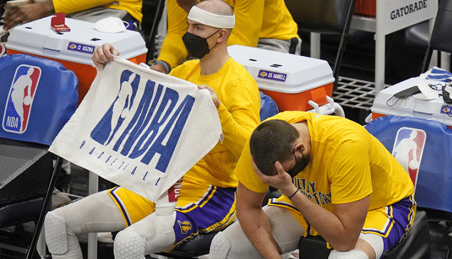 24直播网2月26日讯 本赛季NBA关注度最高的两支的球队是湖人和篮网,湖人是卫冕冠军,队内拥有詹姆斯和浓眉哥,是公认的夺冠大热门球队。篮网的欧文和杜兰特健康归来,哈登加盟之后组成了联盟第一攻击火力的三巨头。不过近期两队的情况不同,篮球取得了一波7连胜,无限逼近东部榜首,而湖人则是吞4连败,近况不佳。这两支争冠球队目前走在不同的道路上,毫无疑问篮网是处于上坡的阶段,而湖人是在走下坡了。