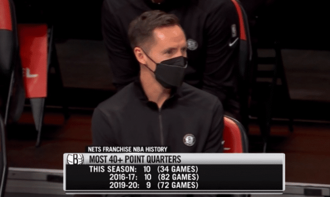 此役篮网在第二节单节轰下41分,这是篮网本赛季第10次单节拿下40分,本赛季仅打了34场比赛就已经10次单节拿下40分也是队史最快。