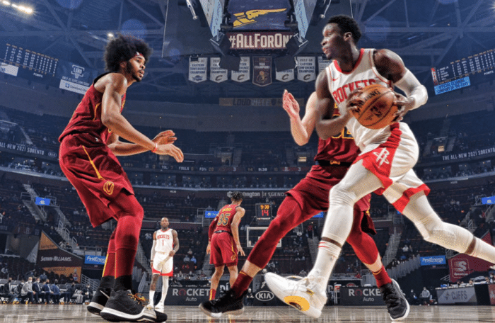 24直播网讯北京时间2月25日,火箭客场挑战骑士,西部倒数第二对阵东部倒数第二,奥拉迪波迎来复出。首节比赛,奥迪在进攻端状态全无,单节5次出手全部打铁,沃尔手感同样不佳,单节7次出手也只命中2球,突破还被麦基大帽!骑士打出27比17取得10分领先。