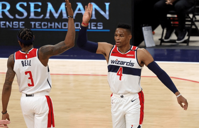 24直播网讯 北京时间2月23日,NBA常规赛奇才爆冷127-124击败湖人豪取5连胜,而湖人则遭遇了3连败,输掉了过去5场比赛中的4场,状况堪忧。比尔和韦少成为此役奇才的英雄,比尔轰下33分7板6助,韦少则贡献32分14板9助,两人合砍65+21+15。关键的加时赛,两人也联手率队制胜。