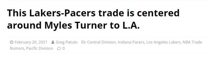 于是美国知名体育媒体《nbaanalysis》专栏记者Greg Patuto撰文分析,建议湖人打包送出库兹马、哈雷尔、马修斯和库克,以此从步行者换来特纳、萨姆纳和贾伦-莱克。