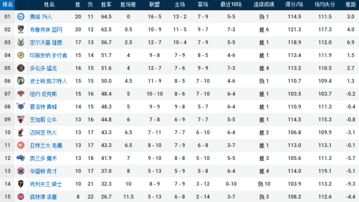 24直播网2月22日讯 今天进行的NBA常规赛已经都结束了,8场比赛中有10支东部球队出战,其中包括凯尔特人加时赛遭鹈鹕逆转,活塞不敌魔术,猛龙击败费城,尼克斯险胜森林狼,篮网双杀快船,老鹰击败掘金、雄鹿也拿下了胜利。东部的格局发生了很大的变化,接下来我们就来看看东部最新排名: