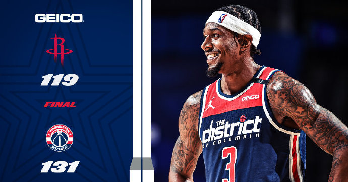 奇才131-119复仇火箭 比尔37分 威少三双 沃尔29+11
