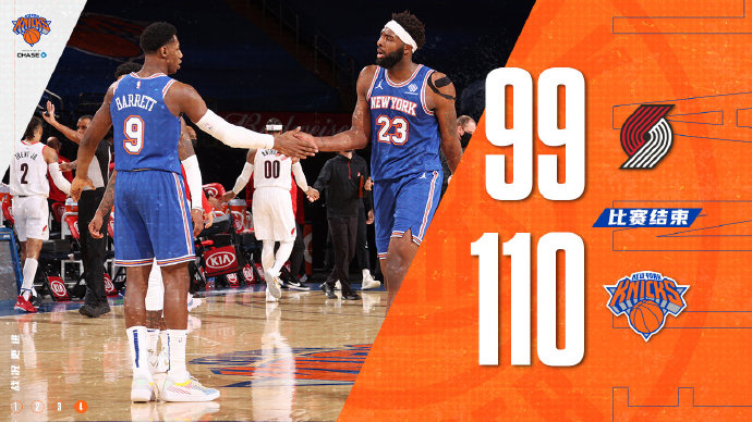 尼克斯110-99力克开拓者 利拉德29+9 兰德尔22+11