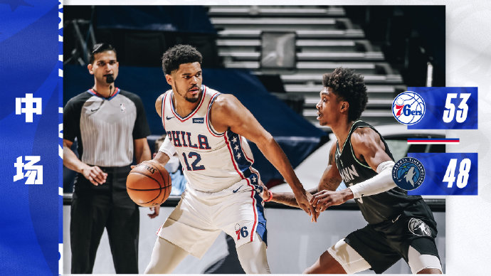次节,76人队又是因为开局低迷,被森林狼打出一波9-3的小高潮拉开了6分差距。幸好替补马克西连得6分稳定局面,换上全部主力后,恩比德连续内线造犯规,同时还打中2+1,西蒙斯突破扣篮,76人队成功将比分反超。半场结束,恩比德的21分8篮板的准两双帮助76人以53-48领先5分。
