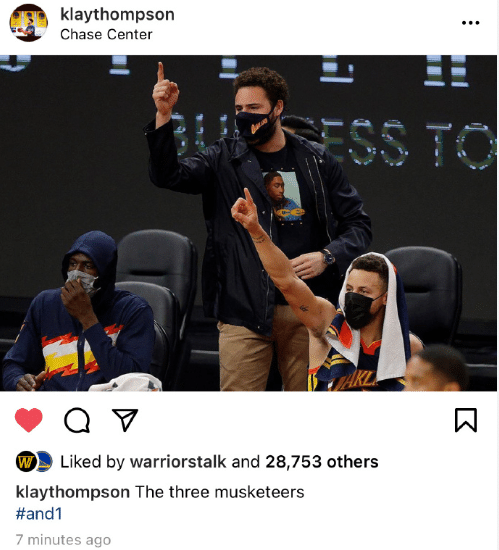 克莱也在场边观看了球队赢球,赛后他发文庆祝胜利:克莱和三个火枪手。