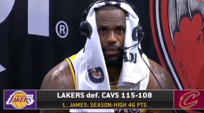 比赛结束之后,詹姆斯接受了采访,谈到末节21分接管比赛的时候,詹姆斯表示:“就像我说的一样,我想继续去不断的完善自己的比赛,让我可以以各种方式去击败对手,不管是三分球、中距离还是低位进攻,总之,我就是想要打出我的统治力而已,让对手的防守失去平衡,今天晚上我做到了”