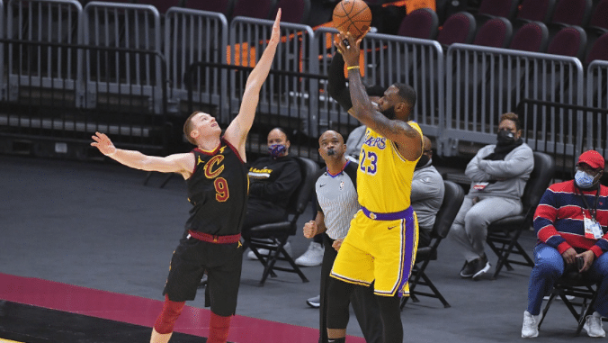 24直播网1月26日讯 今天NBA常规赛的战场上注定是属于詹姆斯的,重返克利夫兰的他全场比赛砍下46分8板6助2断2帽,其中46分也是詹姆斯对阵骑士的最高分。首节17分+末节21分,詹姆斯几乎是以一己之力带队拿下胜利的,尤其是末节鏖战阶段,詹姆斯的超远logo三分和盖帽,相当重要,这也直接让湖人以115-108拿下胜利,新赛季开局至今客场10战全胜,接下来他们还有连续4个客场比赛的,都是在东部。
