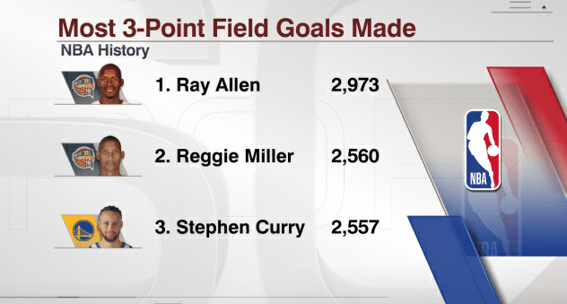 24直播网1月24日讯 恭喜,“萌神”斯蒂芬-库里又迎来生涯里程碑,生涯三分命中数正式达到2561记,与此同时库里超越名宿雷吉-米勒并列历史三分榜第二名,库里领先现役三分榜,现役仅有库里和哈登两人三分命中数突破2300记大关。