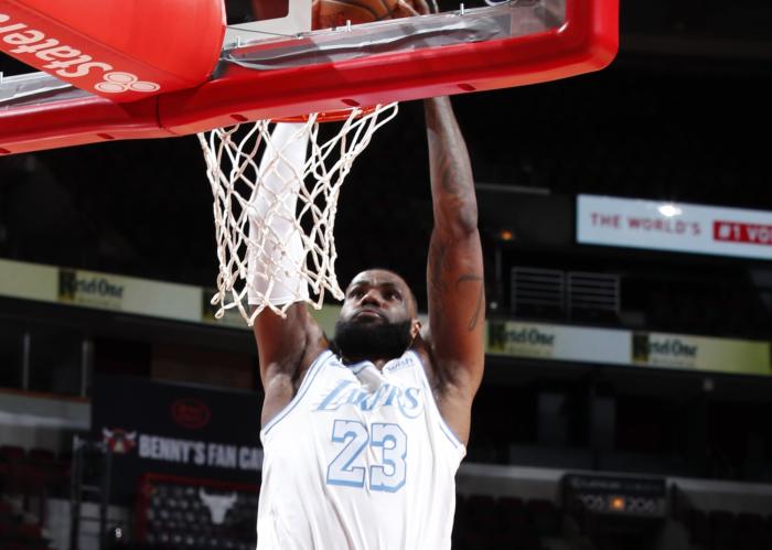 由于早早打卡下班,詹姆斯和浓眉都坐在场边桌子上看比赛,其中36岁詹姆斯早已脱掉战靴,连拖鞋都没穿,直接穿着袜子坐等比赛结束。