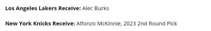 于是美国体育媒体《nbaanalysis》专栏记者Greg Patuto撰文分析,建议湖人打包送出麦金尼和2023年次轮选秀权,从尼克斯交易来神射手伯克斯,用来补强阵容深度和提升进攻火力。