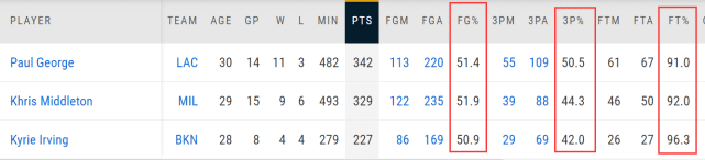 24直播网1月23日讯 新赛季已经开打一个月,在至少出手150次的球员里,一共有三位球星的数据符合180俱乐部的标准,他们分别是快船的乔治、雄鹿的米德尔顿和篮网的欧文。如果他们能保持这样的状态到赛季结束,180俱乐部就会增添新面孔。