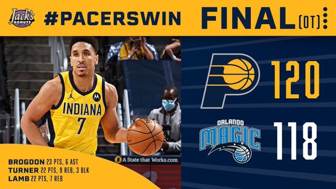 步行者120-118加时险胜魔术 布罗格登23&准绝杀