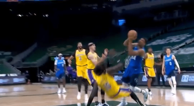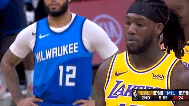 比赛进行到第二节还剩下5分55秒的时候,字母哥在突破的时候杀入篮下,面对哈雷尔的防守,他的左肘打到哈雷尔下巴附近。随后浓眉哥等人表达了不满,哈雷尔痛苦的倒地,在队友的搀扶下慢慢的起身,没有大碍。