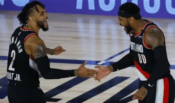 看起来甜瓜才应该是开拓者的首发前锋,实力也够得上首发,但考虑到他的年龄已经36岁,长时间征战也不是件好事,以及其和特伦特的化学反应很好,是替补席的核心火力组合,一下就拆开也不好。