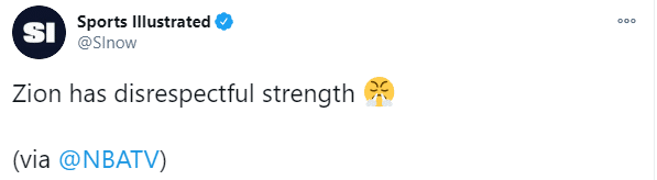 美媒《Legion Hoops》发推盛赞锡安-威廉森是野兽。