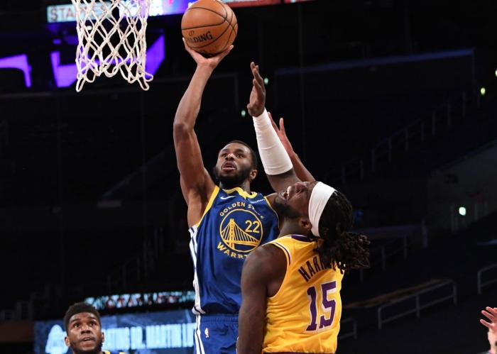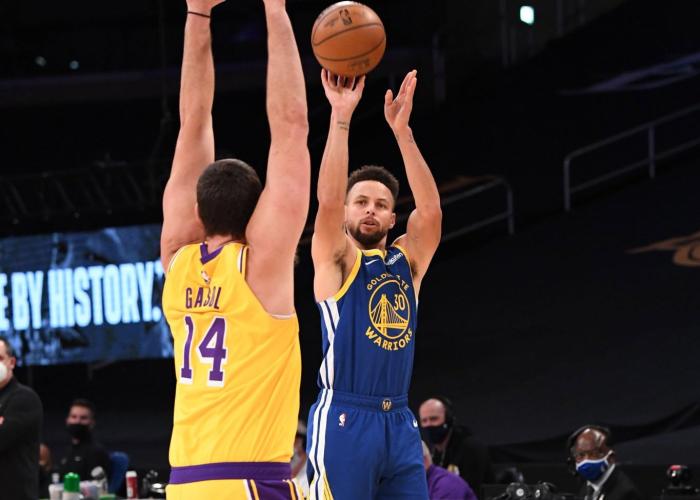 下半场勇士疯狂反扑,库里遭遇包夹无法得分,但维金斯连续命中三记空位三分,卢尼和库里也中3分球,勇士追到仅落后2分;然后浓眉暴扣、库兹马三分止血,三节还剩3分多钟,詹姆斯上来就造犯规两罚全中,助攻库兹马再中三分,湖人又领先到两位数。