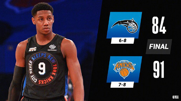 尼克斯91-84险胜魔术 兰德尔21+17 巴雷特22+10