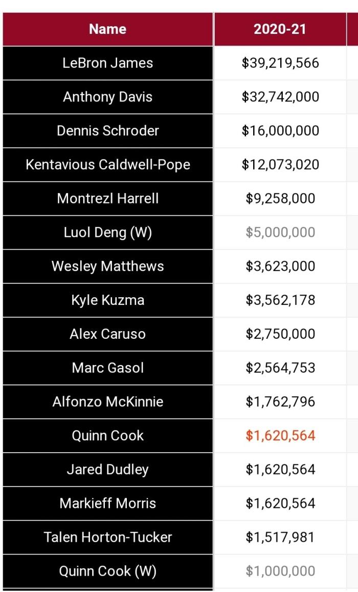 目前罗尔-邓已经退役,搞房产靠收租狂赚上亿美金,可湖人每年还要给他500万美元,一直到下个赛季结束,湖人才能还清这笔债;罗尔-邓年薪500万美元是湖人队内第六高薪,仅次于詹姆斯、浓眉、施罗德、波普和哈雷尔五大主力,远超库兹马的356万美元,比库兹马和塔克的年薪之和还多。