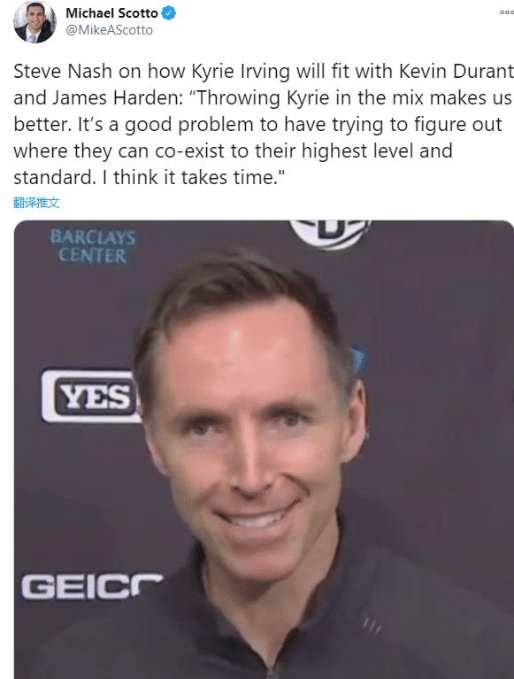 杜兰特和哈登带领篮网赢球,可缺席比赛的欧文扎心了,美球迷疯狂热议交易欧文,实际上篮网不可能交易欧文的;对于篮网三巨头如何才能共存,主教练纳什表示:欧文归队后我们会变得更好。要如何让他们共存并且打出最高水准,这是一个甜蜜的烦恼,我觉得还需要一些时间。