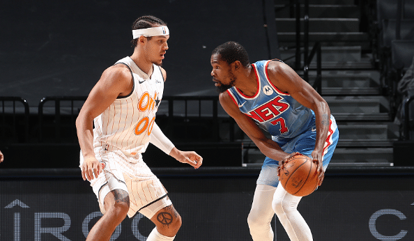 24直播网1月17日讯 NBA常规赛最令人关注的要说是哈登迎来篮网生涯首秀,他带队以122-115败魔术,首秀的哈登砍下32分12篮板14助攻4抢断和9次失误的数据,队友杜兰特拿下42分4篮板5助攻2抢断2盖帽。篮网在末节顶住了魔术的冲击成功拿下胜利,哈登在自己的篮网生涯第一场比赛中就拿下了开门红,个人砍下30+的三双,恭喜哈登。