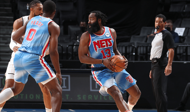 24直播网1月17日讯 NBA常规赛篮网以7分优势击败魔术,迎来3连胜。此役哈登迎来了自己在篮网生涯的首秀,他全场比赛砍下32分12篮板14助攻4抢断和9次失误的数据,虽然首节还只有通过罚球的2分入账,但之后哈登的表现很不错,尤其是第三节带队能力体现了出来,同时末节关键时刻造杀伤和罚球都很关键。首秀就轰下30+的三双,和也成为了联盟第一个做到这样成就的人,而首秀三双和单场14次助攻都是篮网的新纪录。