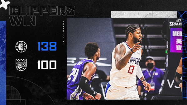 快船138-100击败国王 莱昂纳德27+6 乔治26分