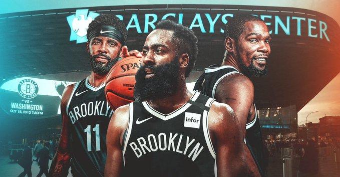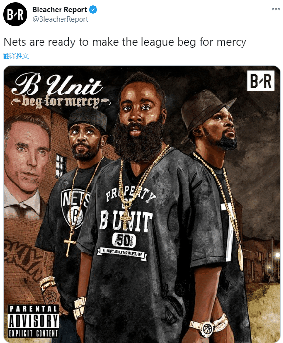 美媒《露天看台》晒杜兰特、哈登和欧文三巨头P照,并且写道:全联盟都等着向篮网求饶吧。