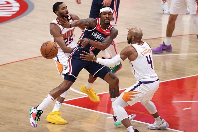 24直播网1月12日讯 NBA常规赛继续进行,韦少因伤休战,奇才主场爆冷大胜太阳,联盟倒数第一屠杀西部第二,奇才全场都把太阳按在地板上摩擦,湖人躺赢稳坐西部第一;NBA本赛季得分王比尔又打疯了,21投12中狂砍34分9助攻8篮板,正负值+29,赛季至今联盟只有比尔一人场均得分30+,力压哈登成联盟得分王,比尔拒绝空砍带队拿到主场首胜。
