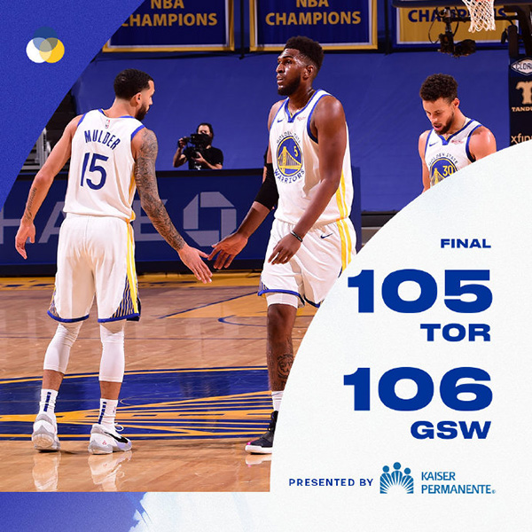 勇士106-105险胜猛龙 西卡25+11 库里16中2