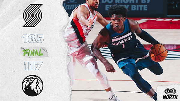 开拓者135-117大胜森林狼 利拉德39+7+7 爱德华兹26分