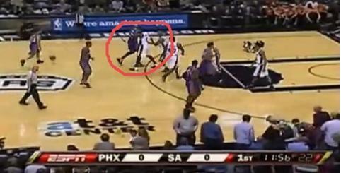 08赛季,在前一个赛季季后赛淘汰了太阳后,马刺和这支拥有奥尼尔的球队首次碰面。一切的诡异从跳球开始,在跳球环节的时候,邓肯完全没有跳,奥尼尔轻松的跳到了球。此时让人想不到的事情发生,迈克芬利突然跑到奥尼尔身边拉住他的胳膊,或许是担心裁判反应不过来,芬利还一直向裁判示意自己犯规了,裁判也只能吹响哨子。