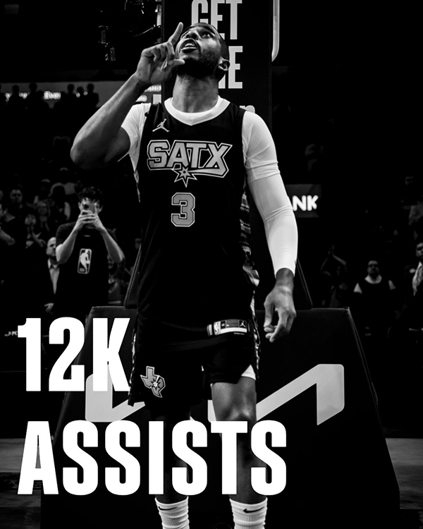 对阵湖人赛前,保罗已经拿到11997次助攻,距离达成新成就仅仅只差3次助攻,比赛正式开打,马刺11-0火热开场,期间保罗送出两次助攻,助攻文班命中三分点燃球馆;比赛继续,保罗继续组织进攻,随着3次助攻到手,保罗正式达成12000次助攻里程碑。