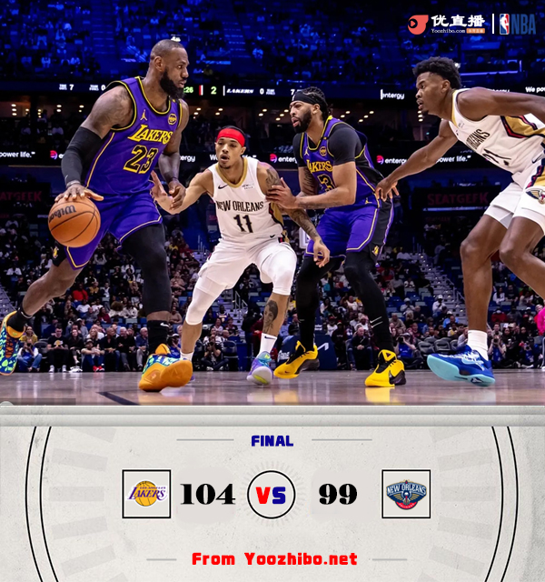 NBA常规赛今日继续开打,鹈鹕坐镇主场迎战4连胜的湖人,鹈鹕方面伤病依旧严重,以锡安、麦科勒姆为首的核心继续缺席比赛,湖人方面八村磊、范德比尔特等关键球员也因伤缺阵。首节之争鹈鹕在短暂拉锯后突出重围,他们在英格拉姆的带领下送出11-0的攻势一举拉开比分并奠定整个上半场的领先;湖人方面打得比较被动,尤其是替补端的贡献依旧不多,整个上半场湖人的替补端仅贡献4分,与之相反的是鹈鹕替补这边有19分入账成为球队半场取得10分领先的关键。休息归来湖人双核詹姆斯和浓眉哥站出来连续拿分,加之克内克特神勇三节拿到21分,湖人送出18-7的攻势一举反超比分。不过鹈鹕也在末节及时回暖和湖人周旋将悬念留到最后,决胜时刻詹姆斯站出来连续飚进两记三分为球队奠定胜局。最终,湖人力克鹈鹕迎来5连胜。