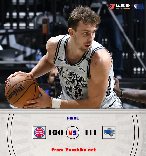 末节,魔术再次面临手感不佳的问题,分差一度缩小至7分。尽管如此,魔术还是调整了战术,逐渐进入状态,通过波段进攻拉开22分的优势。然而,活塞并未放弃,在比赛最后阶段持续追赶。尽管活塞的努力让比赛悬念重生,但最终魔术以111-100战胜对手,赢得比赛胜利。