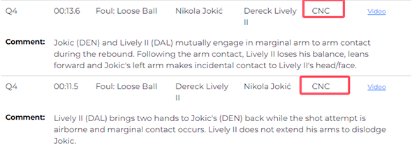 NBA公布掘金和独行侠比赛最后2分钟裁判报告,吹罚全部正确,对于最后时刻的争议判罚,裁判报告显示,约基奇和莱夫利抢篮板时手臂缠在一起,手臂接触后莱夫利失去平衡摔倒,约基奇的左臂偶然碰到莱夫利的头部;莱夫利起身后把双手放在约基奇的背部,发生边缘接触,莱夫利没有伸手推倒约基奇。