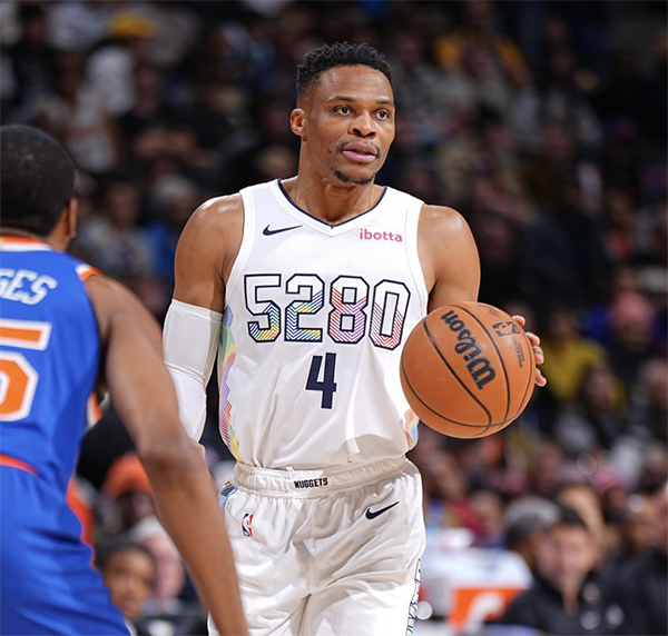 24直播网讯北京时间11月26日,NBA常规赛掘金主场惨败尼克斯,威少全场替补出战25分钟,16投9中、三分7中4、罚球5中5拿到27分3篮板3助攻2抢断1盖帽;前三节威少只拿到3分,但末节威少6分钟爆砍24分创生涯单节得分纪录。